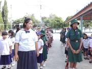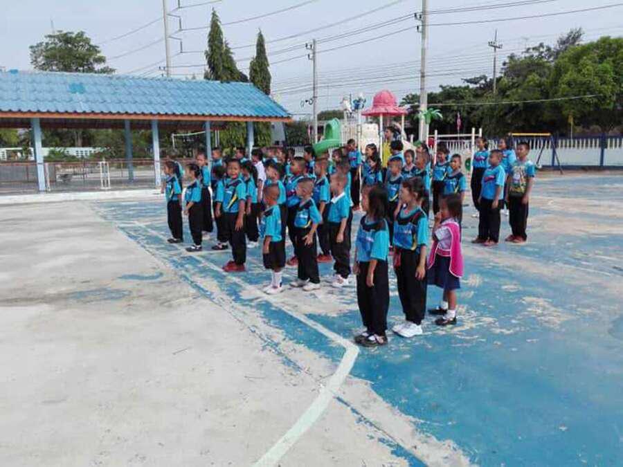 โรงเรียนบ้านปากดง กิจกรรมหน้าเสาธง การเตรียมความพร้อมก่อนเข้าเรียน โดยมีกิจกรรมสำคัญ คือ การเข้าแถว เคารพธงชาติ สวดมนตร์ การอบรมโดยครูเวรประจำวัน เป็นต้น S:0