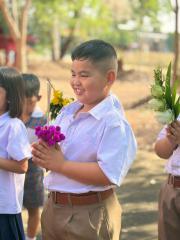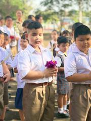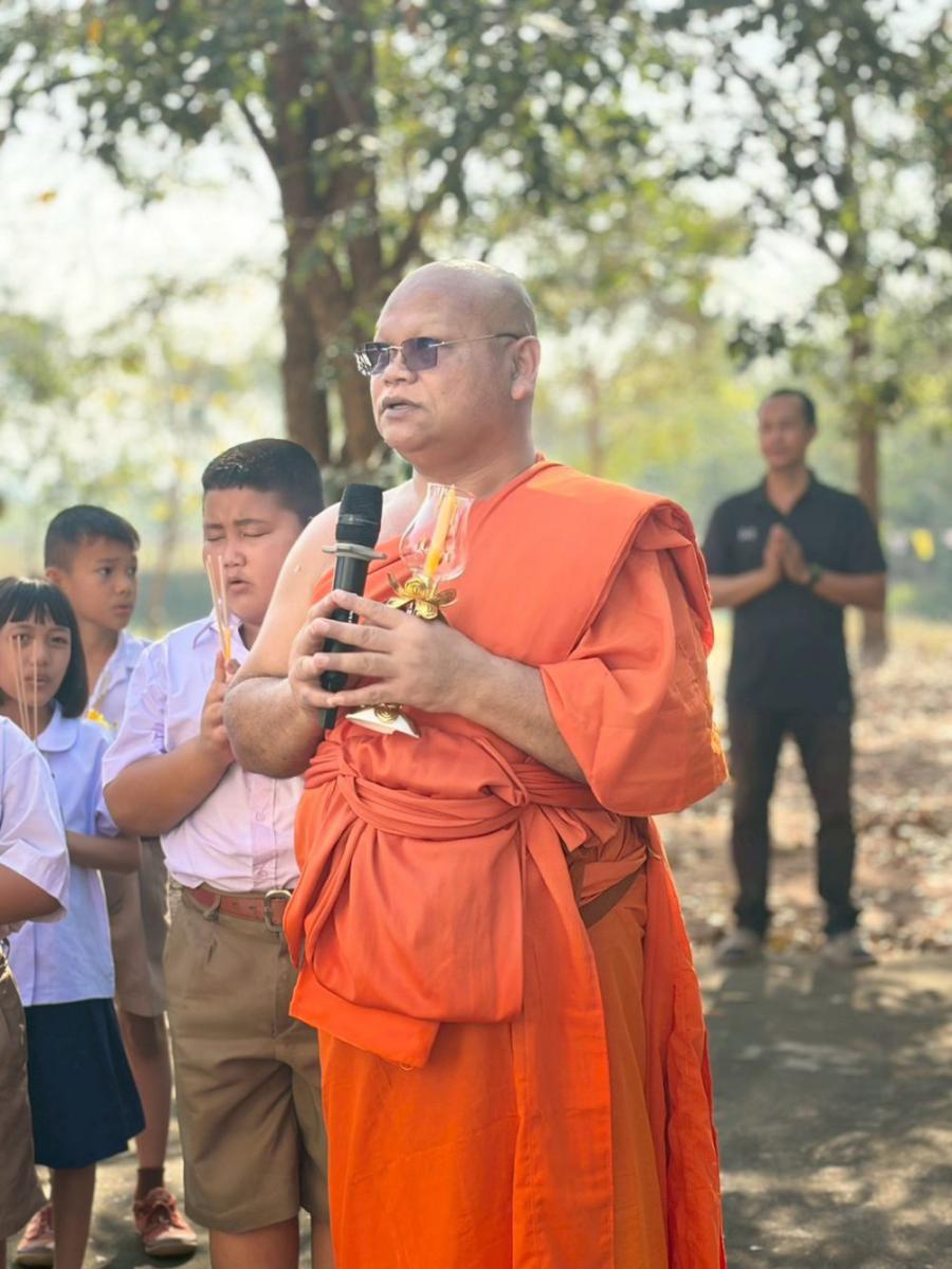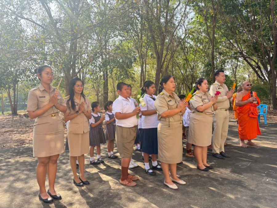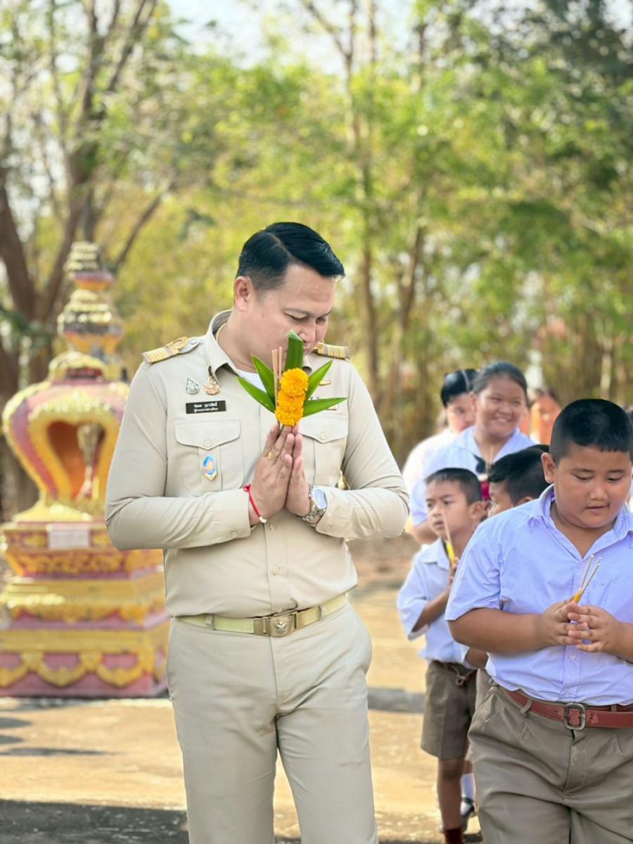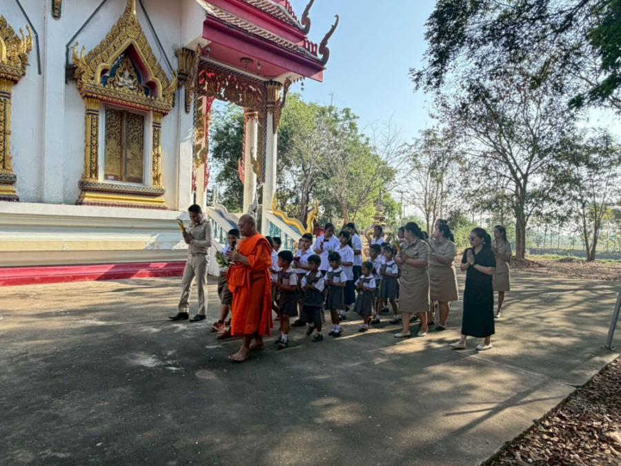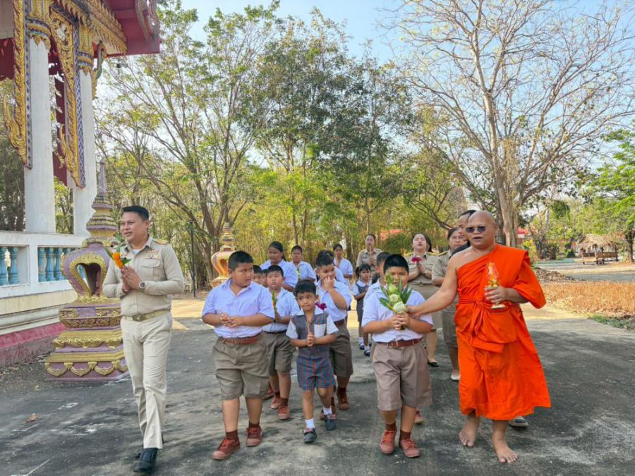 นายชยพล กุมารสิทธิ์ ผู้อำนวยการโรงเรียนบ้านปากดง ครู นักเรียน ร่วมดำเนินกิจกรรมการทำบุญ เจริญภาวนา และเวียนเทียนรอบพระอุโบสถ วัดปากดง S:0